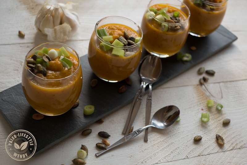 Soep van geroosterde pompoen en knoflook Soep van geroosterde pompoen en knoflook Soep van geroosterde pompoen en knoflook